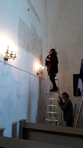 Hilkka Hiiop ja Anneli Randala rääkisid imelistest maalingutest Ridala kiriku seintel, võrreldes neid Koeru, Pöide ja teiste kirikute leidudega.